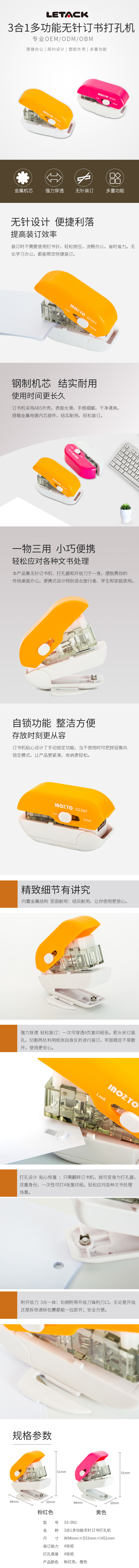 一楽堂SS-3N1三合一多功能無針訂書機(jī)創(chuàng)意商務(wù)禮品訂書機(jī)批發(fā)定制...