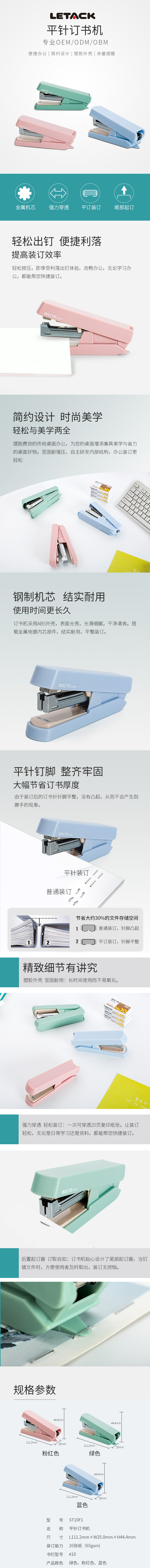 利爾達(dá)ST10F1訂書機(jī)彩色10#中型裝訂機(jī)辦公文具用品貼牌定制...