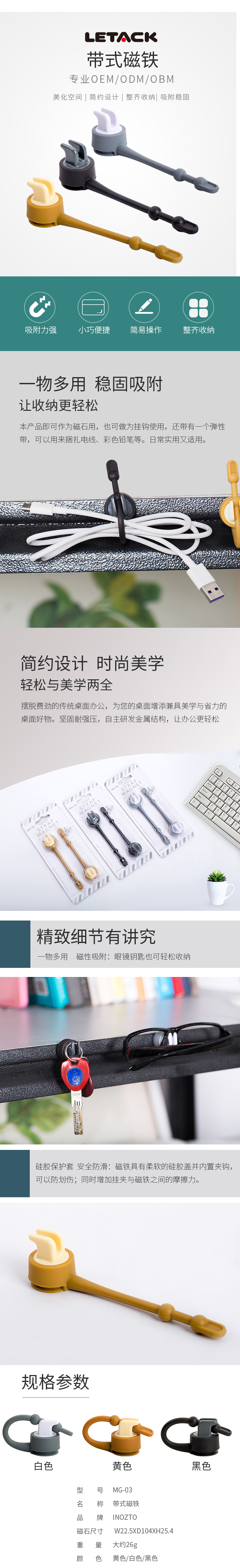 一楽堂MG-03白板磁鐵辦公室數(shù)據(jù)線磁扣便攜彈性帶式磁釘顏色定制...